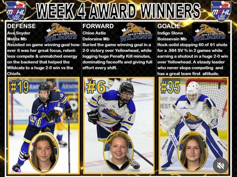 3 Westman Wildcats acknowledged in MFHL U18 AAA weekly award